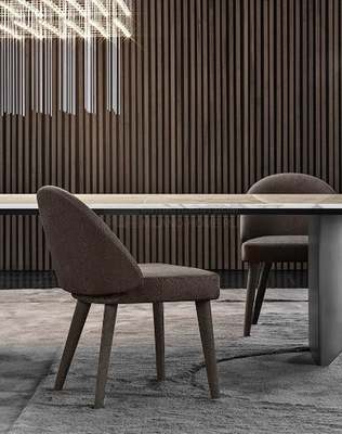 Для обивки доступны ткани из 5-ти стандартных категорий и натуральная кожа и нубук. Возможность комбинировать обивку по цвету, типу материала и фактуре, позволит создать поистине уникальный предмет. Не рекомендуется Алькантара. Ножки на выбор из ясеня, тонированные в цвет Moka open pore или из ясеня, обтянутого натуральной кожей.